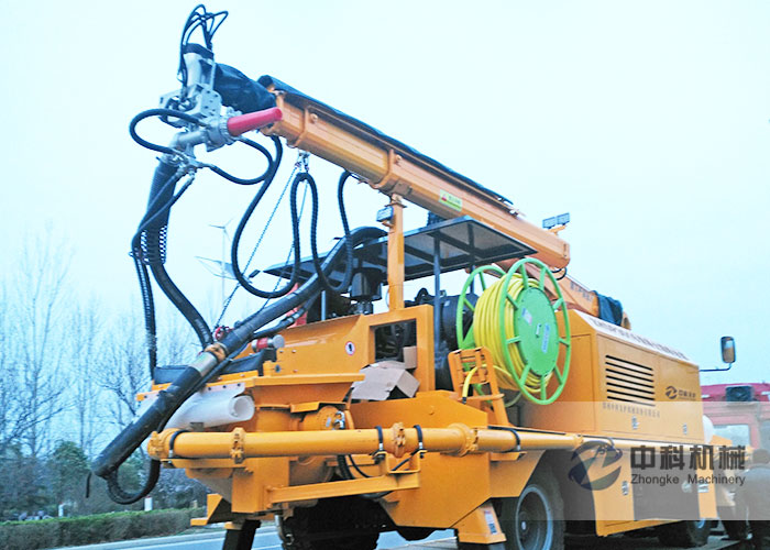 工程底盤混凝(níng)土濕(shī)噴台車又稱為混凝土濕噴(pēn)機(jī)械手,采用無線遙控器操作,噴射混凝土(tǔ)量每小時30立方,具有施工機械化程(chéng)度高、工作(zuò)效率高、回彈量少、施工安全性強、作業環境好等特點。工程底盤混凝土濕噴台車(chē)廣泛適用於鐵路、公路隧道、邊坡、水利(lì)、水電的隧洞(dòng)和涵洞、地鐵以(yǐ)及(jí)各種建築工程等濕(shī)噴混凝土作業。
