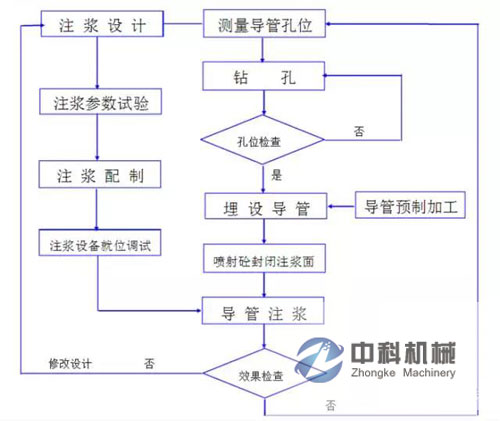 3、 要嚴格現場測試工作,嚴格計量配比,隨時抽檢漿液濃度,防止配比配(pèi)製不當(dāng)而使注漿(jiāng)失效。
